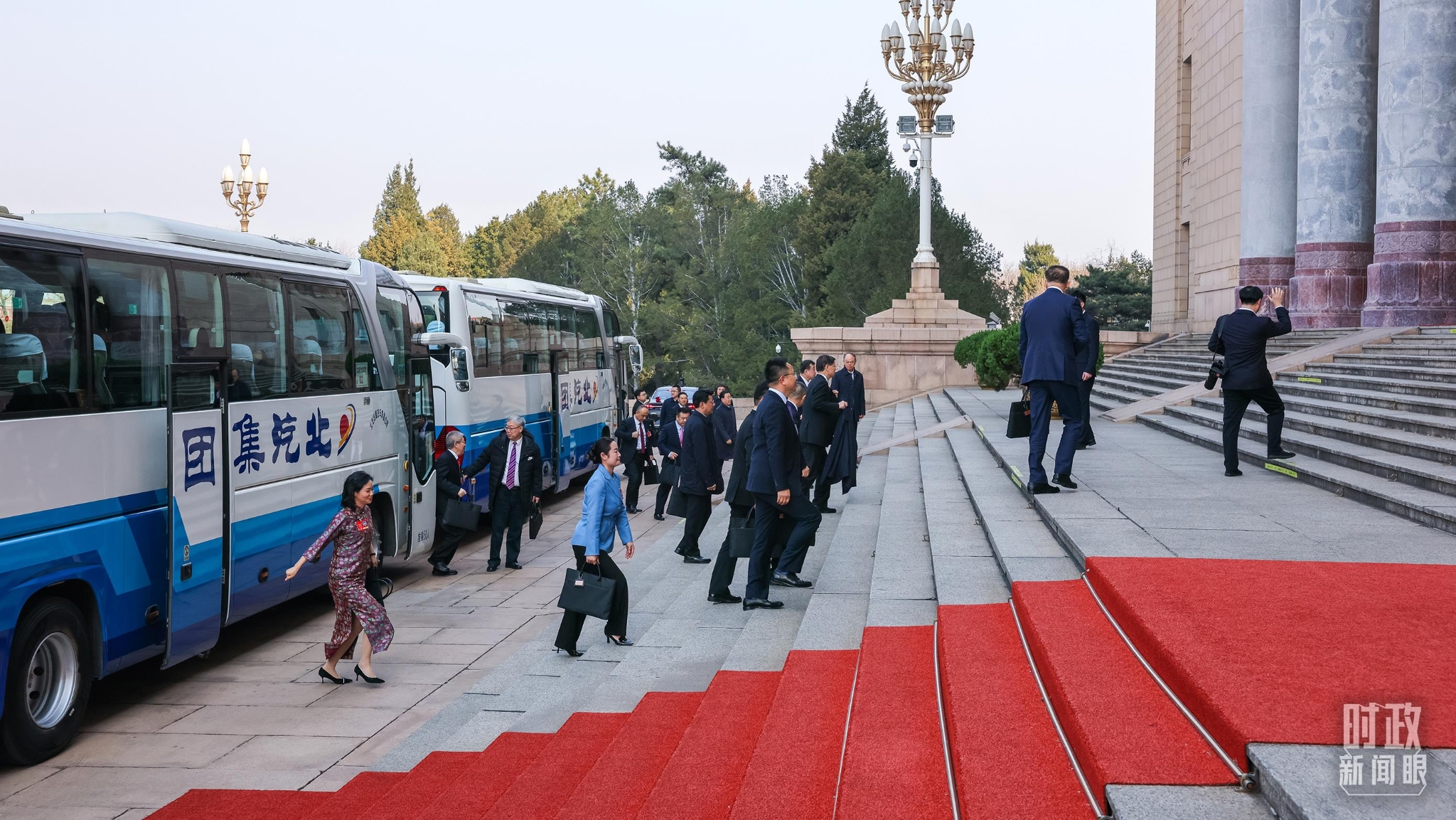△代表們陸續(xù)抵達人民大會堂。(總臺央視記者周倜拍攝)