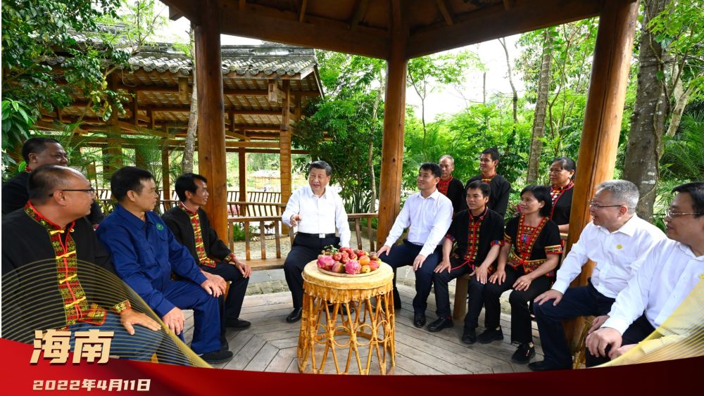 2022年4月,總書(shū)記來(lái)到海南五指山市水滿(mǎn)鄉(xiāng)毛納村考察調(diào)研。村寨涼亭里,鄉(xiāng)親們正議農(nóng)事。
