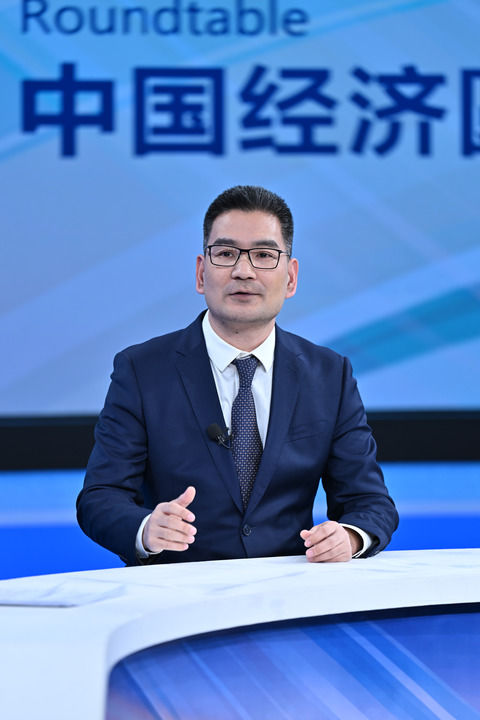 政府工作報告起草組成員、國務(wù)院研究室綜合一司副司長黃良浩在第十四期“中國經(jīng)濟(jì)圓桌會”錄制現(xiàn)場發(fā)言。新華社記者 李鑫 攝