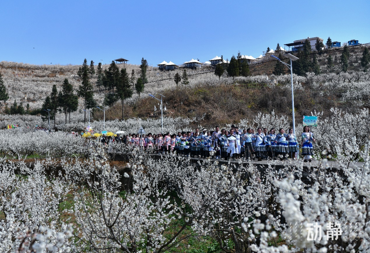 春光燦爛,畢節(jié)市納雍縣厙東關(guān)鄉(xiāng)以陶營村為核心的萬畝櫻花如期綻放。雪白的花瓣在枝頭搖曳,花香四溢,吸引了眾多游客前來觀賞。
