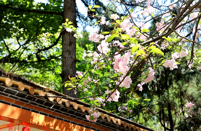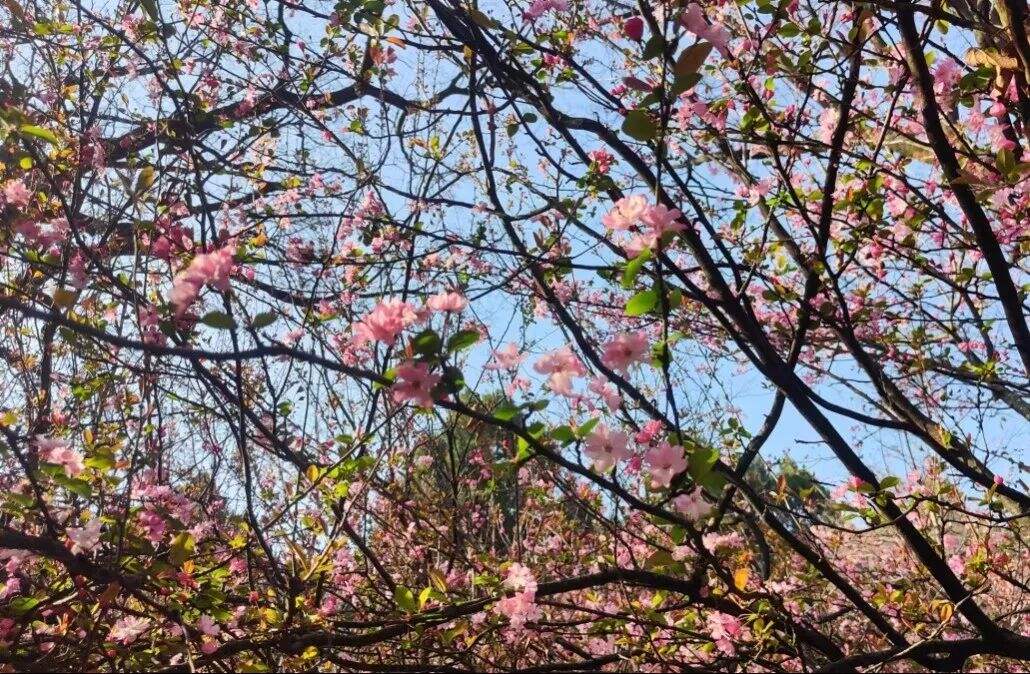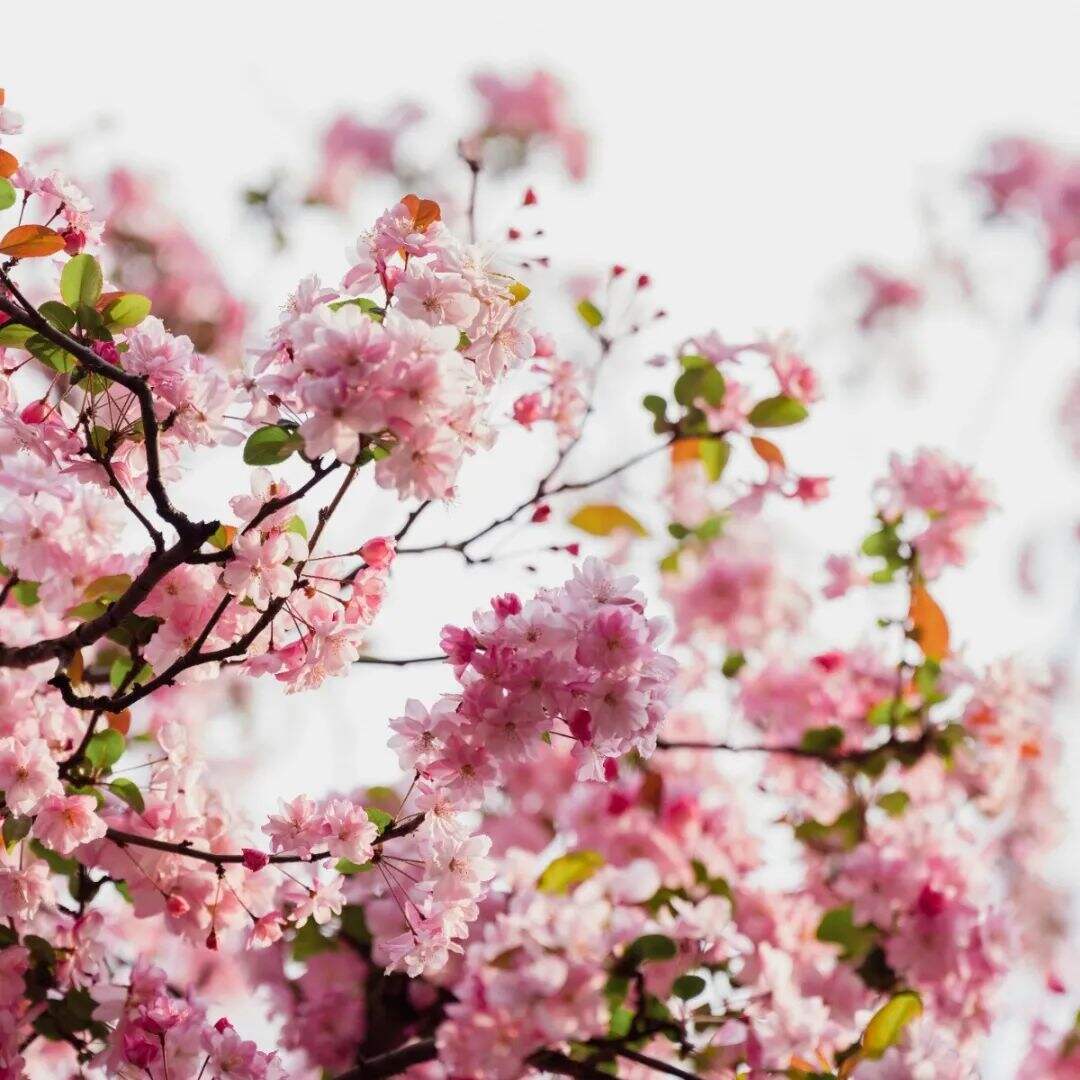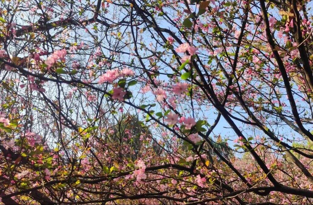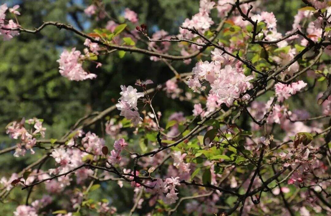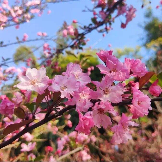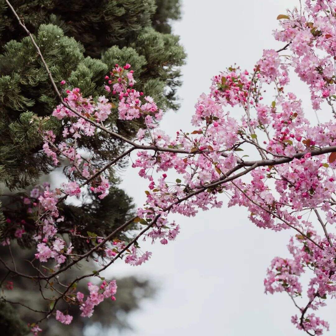 粉白海棠與緋紅櫻花錯(cuò)落交織