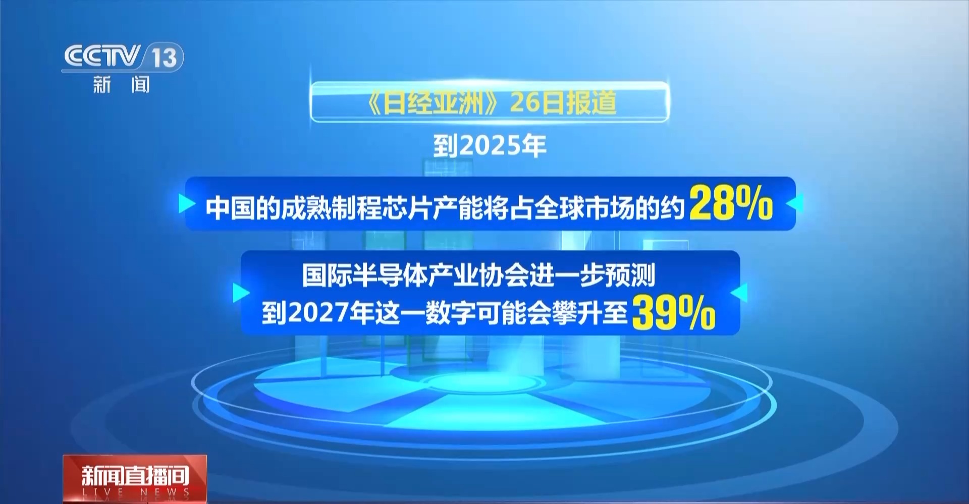 《日經(jīng)亞洲》26日也報(bào)道稱,到2025年,中國的成熟制程芯片產(chǎn)能將占全球市場的約28%。國際半導(dǎo)體產(chǎn)業(yè)協(xié)會(huì)進(jìn)一步預(yù)測,到2027年這一數(shù)字可能會(huì)攀升至39%。