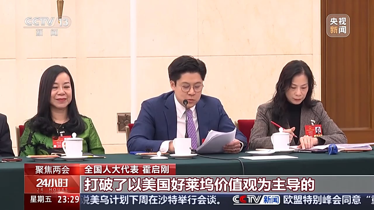 全國人大代表 霍啟剛:最近的《哪吒2》更創(chuàng)下票房歷史,打破了以美國好萊塢價(jià)值觀為主導(dǎo)的這種說故事的方式,成功以我們中國的故事和中國的哲學(xué)感染世界的觀眾。我認(rèn)為香港可以更加用文化+的概念跟理念,在文化產(chǎn)業(yè)發(fā)展上作出更多的貢獻(xiàn),更以香港國際橋梁和傳統(tǒng)優(yōu)勢,實(shí)現(xiàn)中國文化抱團(tuán)出海等,讓文化事業(yè)和文化產(chǎn)業(yè)得以相輔相成,把香港發(fā)揮成中華文化產(chǎn)業(yè)中的“金融港”和“出口港”。
