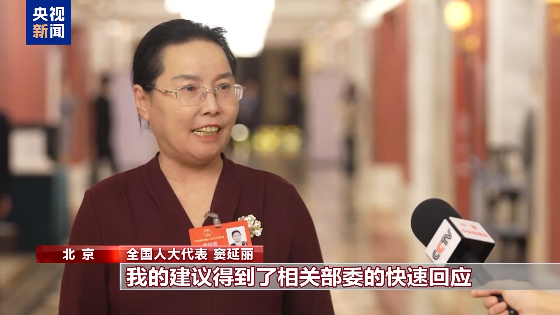全國(guó)人大代表 竇延麗:我的建議得到相關(guān)部委的快速回應(yīng),讓我真切感受到了部委對(duì)代表建議的重視。