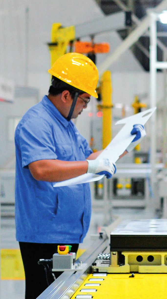 工人在位于廣東珠海的緯景儲能珠?!俺?G 工廠”工作(2024 年5月19日攝)李任滋攝 / 本刊