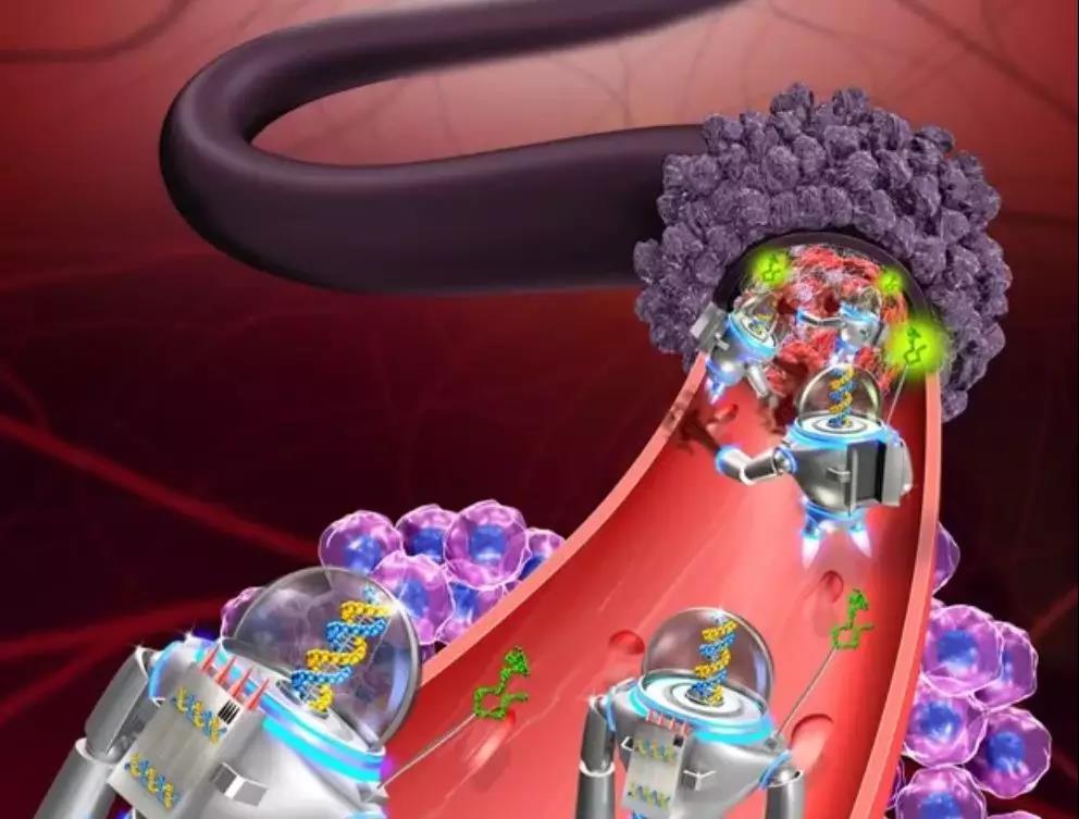 ??納米機(jī)器人或許將開啟一場醫(yī)療革命??茖W(xué)家設(shè)想,納米機(jī)器人能夠在人體血管中巡航,精準(zhǔn)清除血栓、修復(fù)癌癥細(xì)胞,就像快遞小哥一樣定點(diǎn)遞送藥物,實(shí)現(xiàn)“無創(chuàng)手術(shù)”。圖為用于腫瘤治療的智能型DNA納米機(jī)器人示意圖。國家納米科學(xué)中心供圖