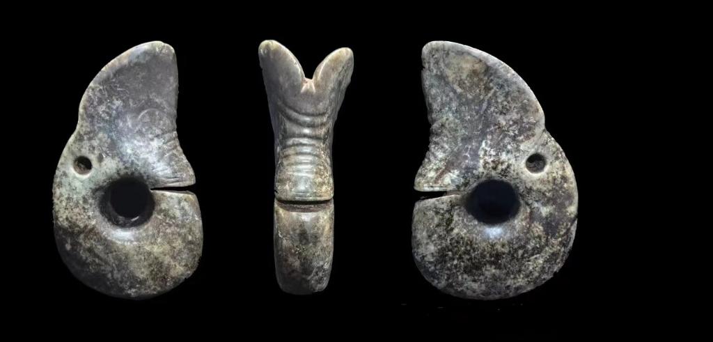 玉龍是紅山文化玉器的典型代表。2024年,紅山玉龍“家族”又增添新成員,考古人員在赤峰市敖漢旗下洼鎮(zhèn)元寶山積石冢發(fā)現(xiàn)一件長15.8厘米、寬9.5厘米、厚3厘米的玉龍,是目前考古發(fā)掘出土的體量最大的一件玉龍。