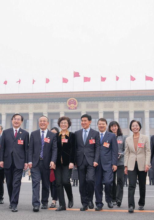 3月11日,十四屆全國人大三次會議在北京人民大會堂舉行閉幕會。這是閉幕會后,代表們走出人民大會堂。新華社記者 金立旺 攝