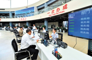 中國(云南)自由貿易試驗區(qū)昆明片區(qū)綜合服務中心推出“一窗受理,一網通辦,一次辦成”服務,整合受理各項業(yè)務。 記者王俊星攝