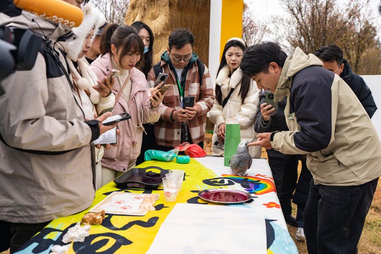 陽(yáng)春三月正是綠孔雀春情發(fā)動(dòng)的季節(jié),野生動(dòng)植物救護(hù)繁育中心的工作人員也到了一年中最繁忙的時(shí)候,經(jīng)過(guò)3年多的不斷探索和反復(fù)研究,取得了綠孔雀人工繁育的較大突破。截至2024年底,成功繁育綠孔雀 48 只,下一步還將逐步將人工繁育的綠孔雀放歸到野外環(huán)境中。在此也呼吁大家,大自然的美是需要保持距離的,孔雀開(kāi)屏固然好看,可我們也要保持足夠的觀賞距離和安靜舒適的環(huán)境,只有大家一起踐行科學(xué)保護(hù)之舉,大自然才能綻放出最純粹的美。同時(shí),園區(qū)還邀請(qǐng)了非洲灰鸚鵡小灰、小老虎、卡皮巴拉等動(dòng)物明星們來(lái)到孔雀園,用火龍果汁為顏料,留下腳印,與朋友們一起用畫(huà)筆擁抱春天,把春天裝進(jìn)心里。