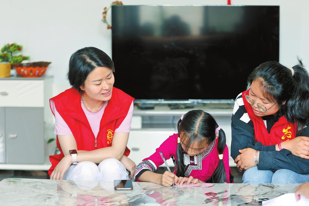 石林縣“愛心媽媽”志愿者陪伴留守兒童。記者陳飛 通訊員張璦妮 攝