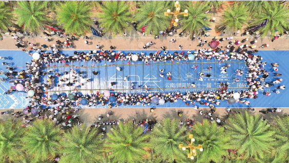 本次旅游季以年輕化、場景化為突破口,推出系列潮玩項目,讓古老壯鄉(xiāng)煥發(fā)新活力。在五龍鄉(xiāng)露營基地,夜晚,游客可入住帳篷,圍爐煮茶、觀賞水上煙花秀;白天則可乘熱氣球升至百米高空,俯瞰南盤江碧波與浩渺云海交織的春日畫卷。萌寵樂園、百米畫卷繪畫互動則為家庭游客提供溫馨互動空間,成為親子家庭的熱門打卡點(diǎn)。