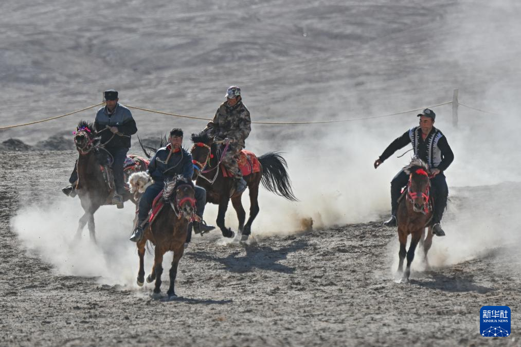 3月22日,在新疆塔什庫(kù)爾干塔吉克自治縣瓦恰鄉(xiāng),當(dāng)?shù)卮迕駷橛慰驼故痉俏镔|(zhì)文化遺產(chǎn)“叼羊”運(yùn)動(dòng)。