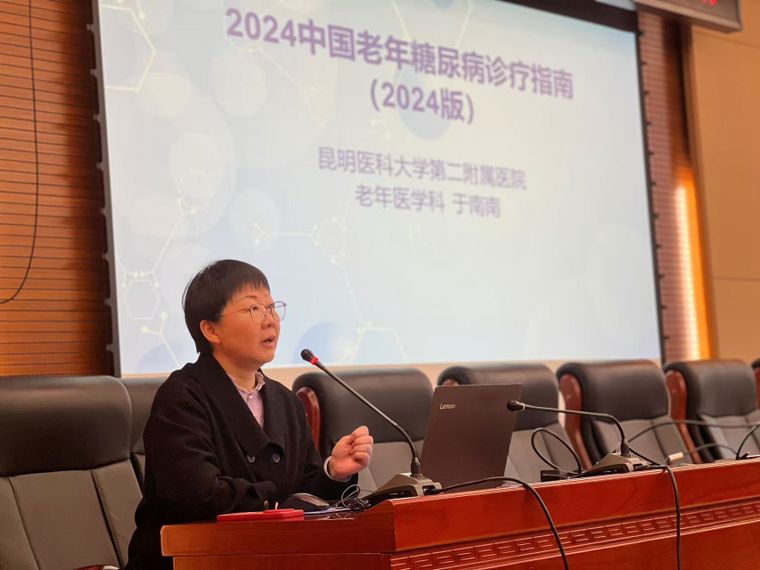 活動現(xiàn)場,昆明醫(yī)科大學(xué)第二附屬醫(yī)院老年病科主任于南南帶來《老年患者常見多發(fā)病的預(yù)防》專題講座,通過案例分析為老年人普及疾病預(yù)防知識。