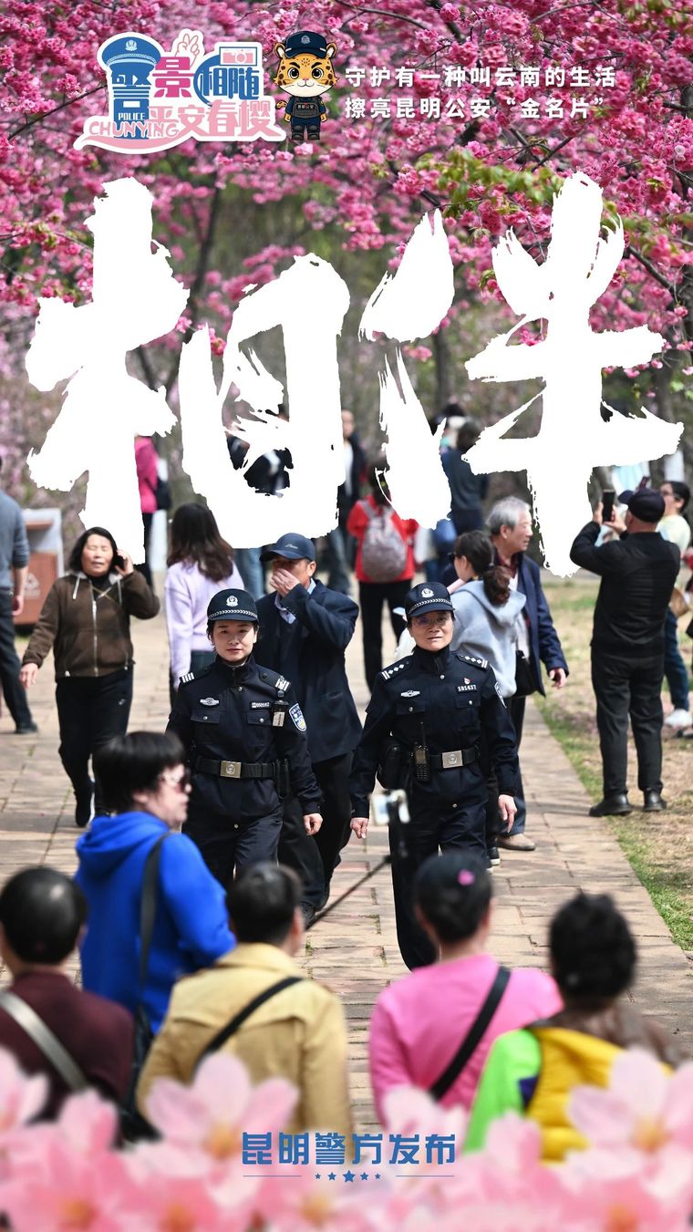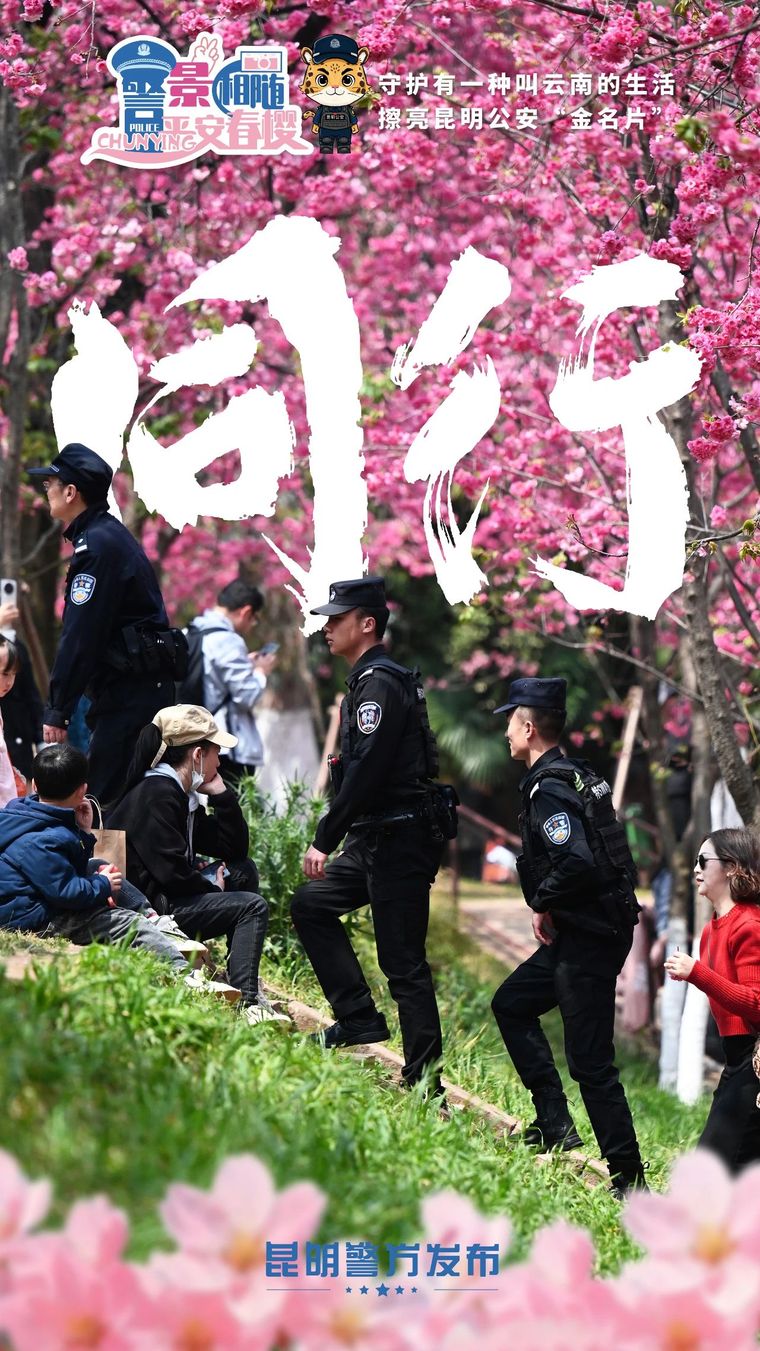 昆明信息港訊 記者合宇聰 陽春三月,昆明櫻花如潮。3月12日起,昆明公安持續(xù)開展“守護(hù)有一種叫云南的生活”昆明公安“警景相隨·平安春櫻”主題宣傳活動(dòng),擦亮忠誠(chéng)鐵軍、平安云南、法治公安、新型警務(wù)四張“金名片”,用堅(jiān)實(shí)的安保措施和貼心的便民服務(wù),邀請(qǐng)市民游客共享“櫻花盛事”。