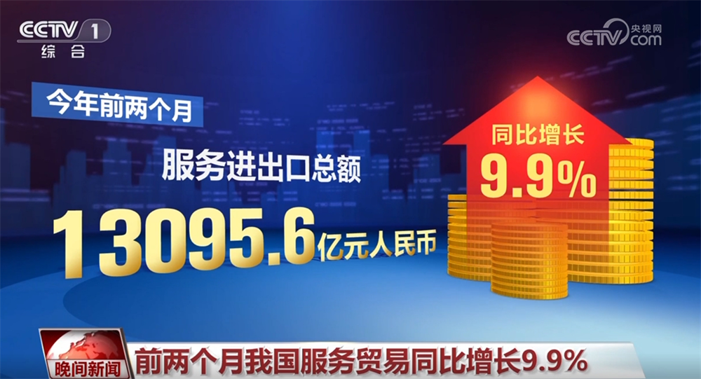 商務部最新數(shù)據(jù)顯示,今年前兩個月,我國服務貿(mào)易較快增長,服務進出口總額13095.6億元人民幣,同比增長9.9%。其中,出口5495.8億元,增長13%;進口7599.8億元,增長7.8%。