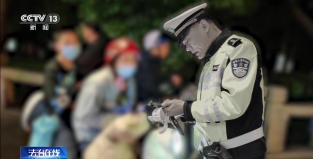 在執(zhí)法現(xiàn)場視頻中,已近凌晨1點,鏡頭記錄下了許允若最為平常的不眠之夜。32年的交警生涯,像這樣的不眠之夜數(shù)也數(shù)不清,1萬多天的早晚高峰,每天10個小時在路上,他是那個永遠(yuǎn)在路上的人。