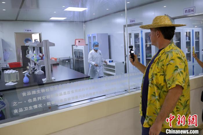 圖為參加“僑”見海南自貿(mào)港主題活動的托米正在拍攝記錄企業(yè)參訪之行?!≈行戮W(wǎng)記者 駱云飛 攝
