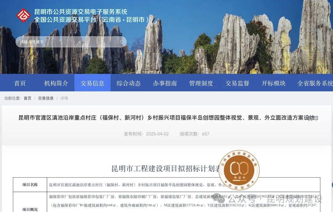 4月2日,昆明市公共資源交易中心發(fā)布“昆明市官渡區(qū)滇池沿岸重點(diǎn)村莊(福保村、新河村)鄉(xiāng)村振興項(xiàng)目福保半島創(chuàng)想園整體視覺(jué)、景觀、外立面改造方案設(shè)計(jì)”擬招標(biāo)計(jì)劃表,標(biāo)志著占地4.8萬(wàn)平方米的福保彩印包裝廠工業(yè)遺址,即將成為獨(dú)具魅力的文旅創(chuàng)新項(xiàng)目——“半島創(chuàng)想園”,為昆明文旅市場(chǎng)帶來(lái)別具一格的商業(yè)新形態(tài)。