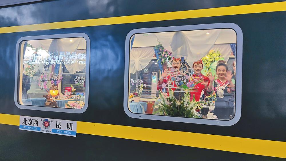 北京往返昆明“賞花之旅 一路花香”主題列車是中國鐵路昆明局集團有限公司與云南文旅部門聯(lián)合打造的特色列車,目前開行的Z162/1次花卉主題列車往返昆明至北京間,途經(jīng)貴陽、長沙、鄭州等10余個車站,列車上每天都有鮮花展示,一年四季花卉不斷,進一步展示云南豐富的花卉資源、獨特的民族文化以及豐富的旅游資源。