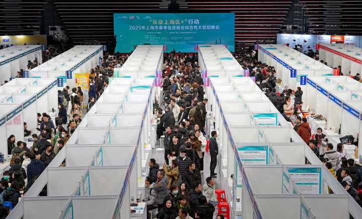 2025年2月14日,“樂業(yè)上海優(yōu)+”行動(dòng)——2025年上海市春季促進(jìn)就業(yè)綜合性大型招聘會(huì)在上海體育館舉行。新華社記者 劉穎 攝