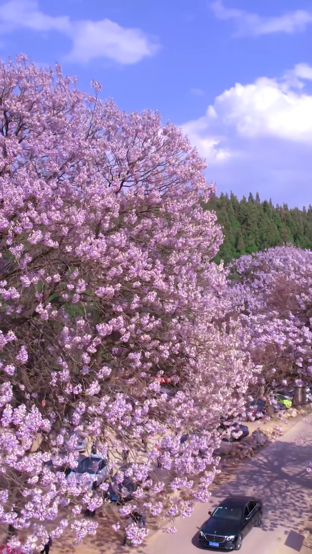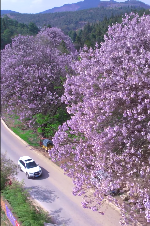 錯(cuò)過(guò)了櫻花沒(méi)關(guān)系!西山區(qū)這條去往團(tuán)結(jié)的公路上,泡桐花正在跳圓舞曲。