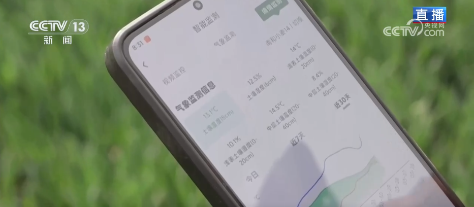 管理這片地的農(nóng)戶告訴記者,這段時(shí)間什么時(shí)候澆水,不用再靠老農(nóng)民的經(jīng)驗(yàn)去判斷了,只需打開(kāi)手機(jī)上的APP,上面有近30天、近7天甚至是當(dāng)天的墑情監(jiān)測(cè),上面詳細(xì)顯示著這三個(gè)階段麥田的土壤溫度、土壤濕度的數(shù)據(jù)。這些數(shù)據(jù)是來(lái)自于麥田里的智能氣象監(jiān)測(cè)儀和土壤墑情監(jiān)測(cè)儀,兩個(gè)監(jiān)測(cè)儀把收集到的信息轉(zhuǎn)化為數(shù)字信號(hào),可以實(shí)現(xiàn)土壤墑情預(yù)警、智能灌溉方案自動(dòng)生成,農(nóng)戶就此來(lái)進(jìn)行澆灌。
