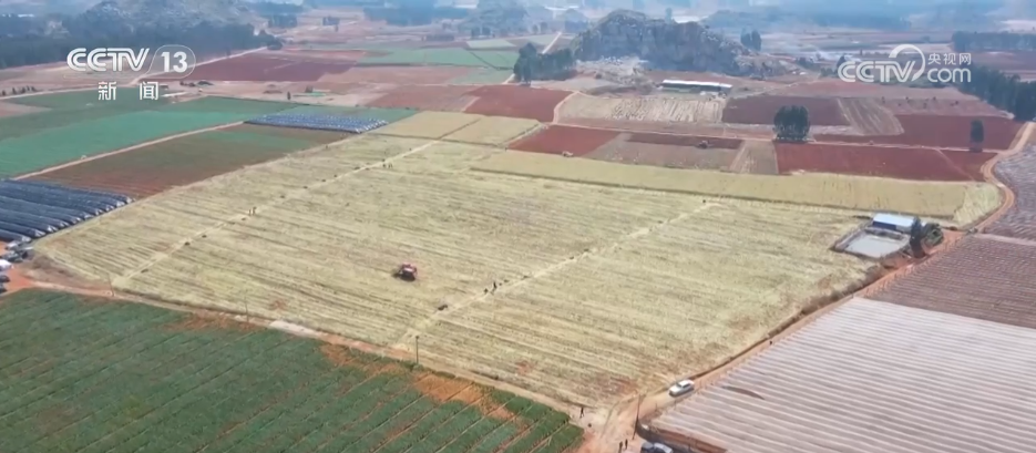 日前,在云南曲靖市陸良縣,錯(cuò)峰輪作的2萬(wàn)畝油菜迎來(lái)了采收季,當(dāng)?shù)剞r(nóng)戶正在加緊收割。