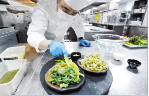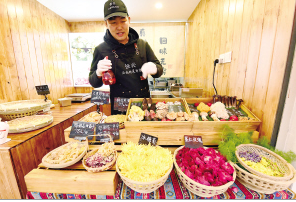 昆明五星級賓館大廚用鮮花、野菜做出美食。