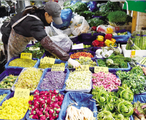 昆明菜市場里各種可以食用的春菜讓人應(yīng)接不暇。