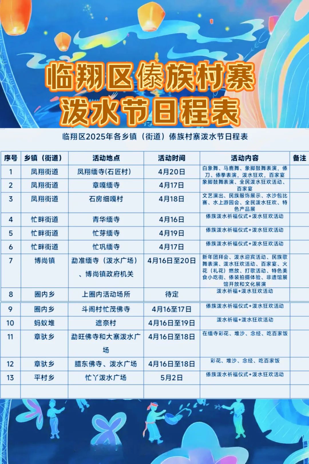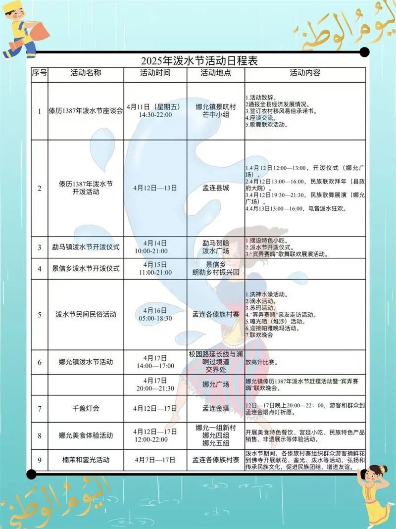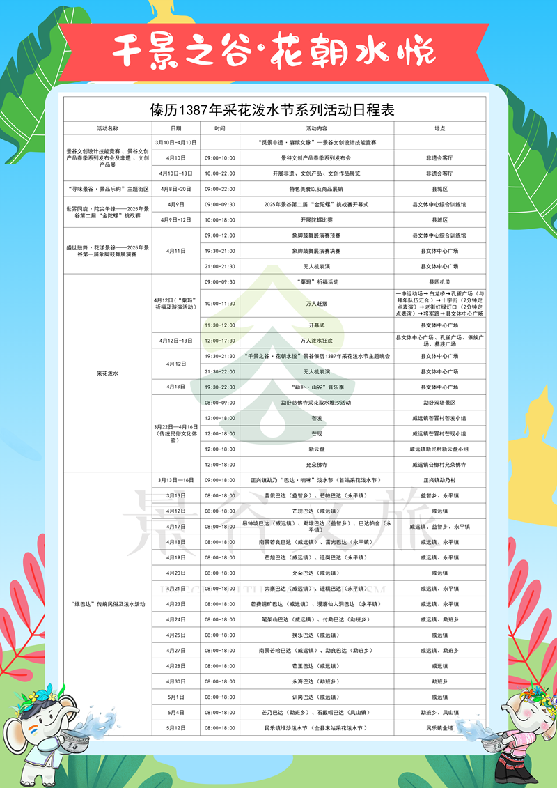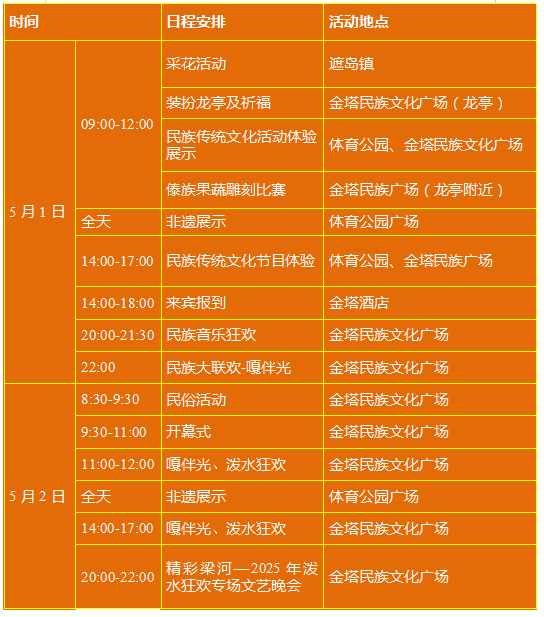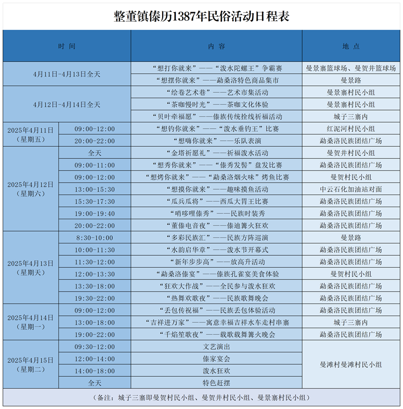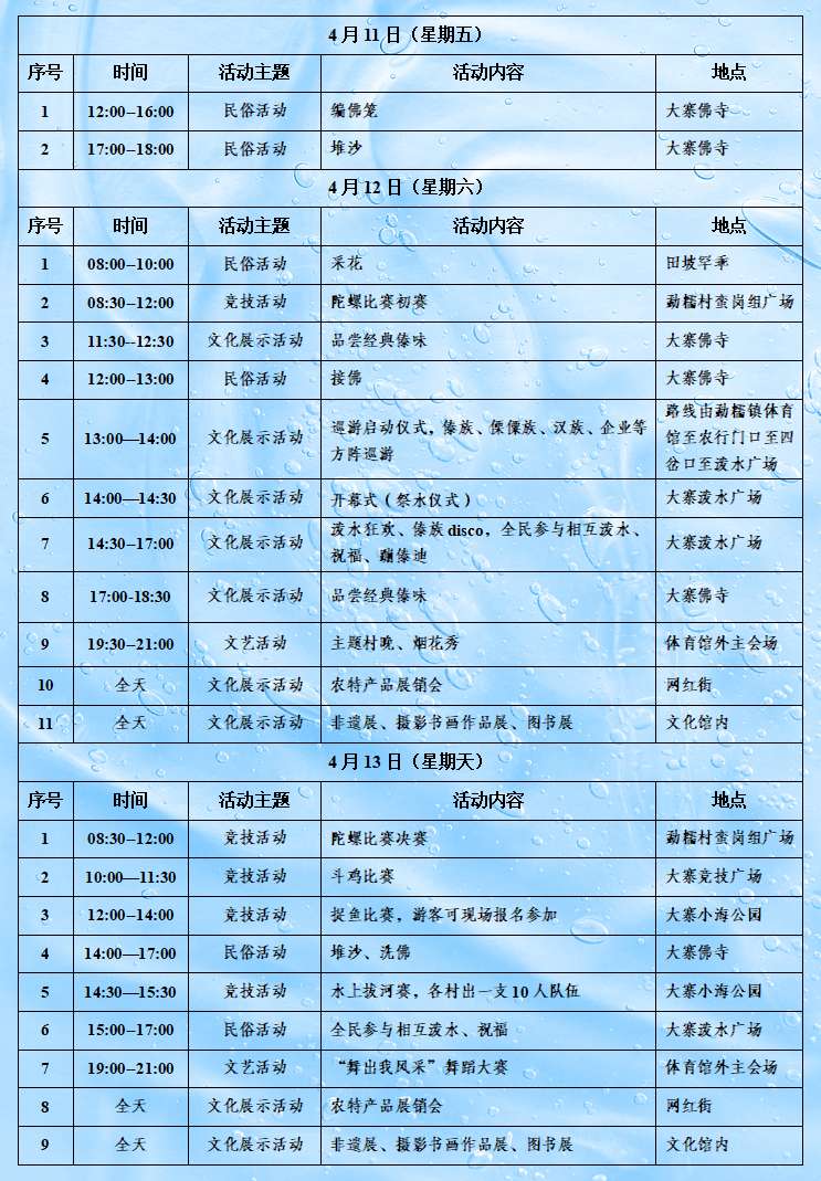 云南各州市潑水節(jié)時間、場地安排