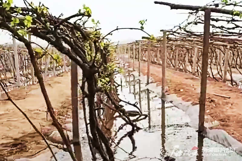 4月7日,在鄯善縣吐峪溝鄉(xiāng)洋海夏村葡萄地,村民艾海提·買買提打開閥門,鋪設(shè)在地里的高效節(jié)水微噴灌管網(wǎng)噴出水花,讓葡萄藤及時(shí)“喝”上了春灌水。