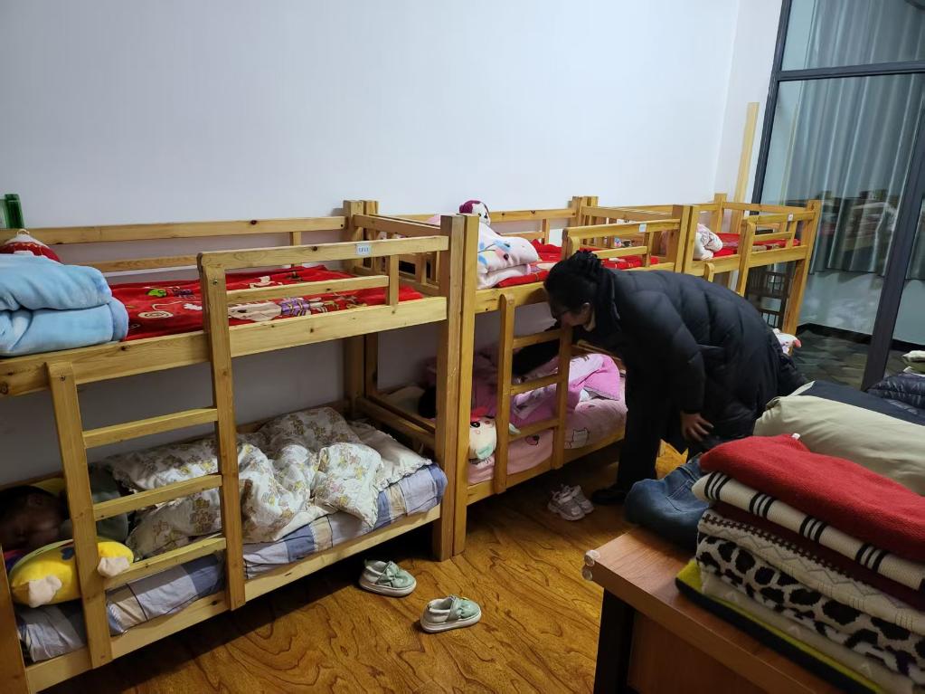2025年3月17日,周雪在兒童福利院宿舍巡查。(受訪者供圖)