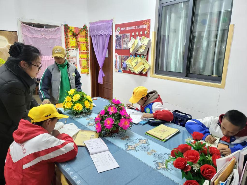 2025年3月17日,周雪在兒童福利院與放學(xué)回去的孩子談心,了解他們在學(xué)校的情況。(受訪者供圖)