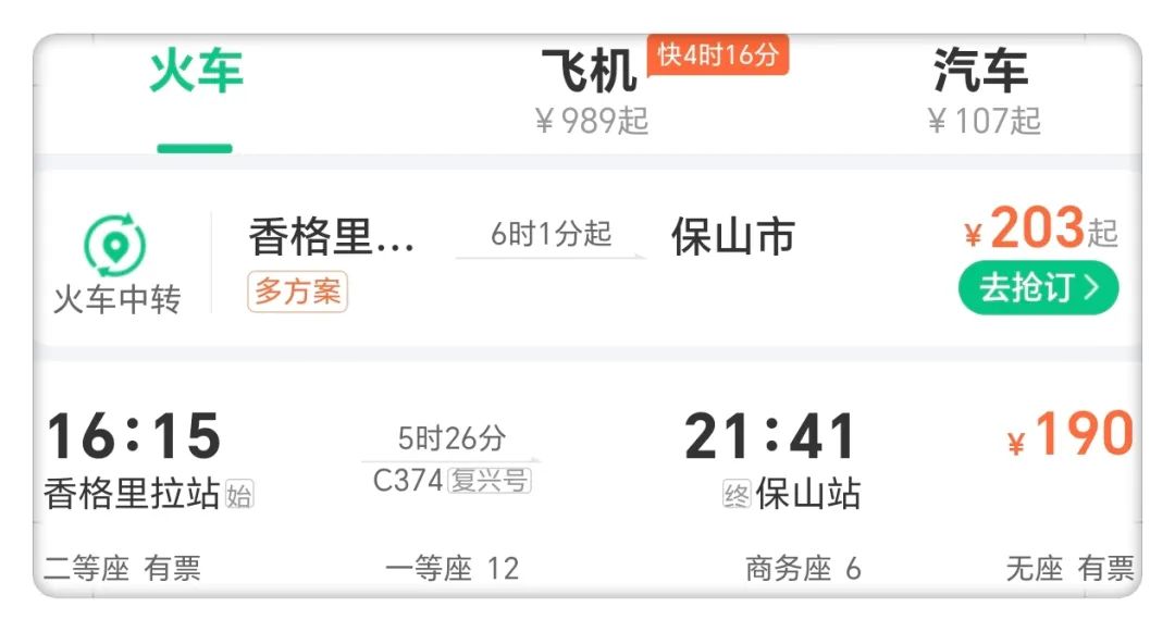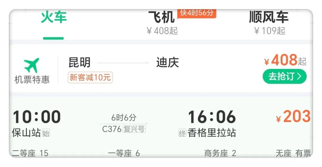 保山往返香格里拉的動車