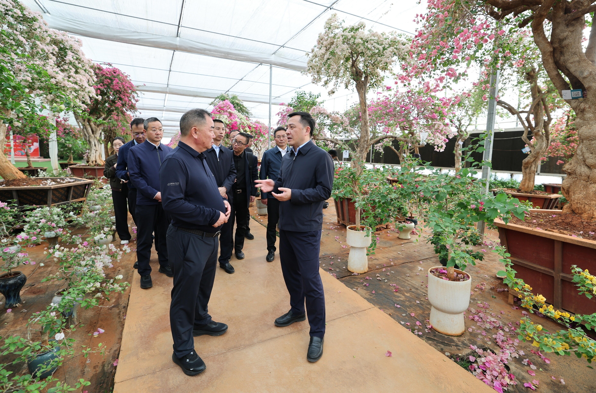 宜良縣素有“中國花卉苗木之城”美譽(yù)。劉洪建一行先后到為君開三角梅博覽園、張宜莊園,實地察看花卉苗圃產(chǎn)業(yè)發(fā)展和農(nóng)文旅融合發(fā)展情況。劉洪建鼓勵企業(yè)在進(jìn)一步鞏固提升現(xiàn)有業(yè)態(tài)基礎(chǔ)上,發(fā)揮優(yōu)勢、打造特色、做強(qiáng)品牌,實現(xiàn)更大發(fā)展。