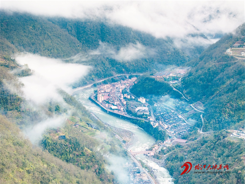 依山傍水的獨(dú)龍江鄉(xiāng)鳥瞰圖。 高玉生 攝