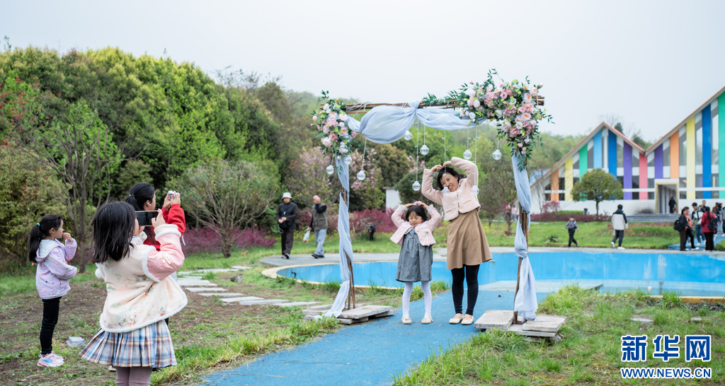 游客正在峰頂山旅游景點(diǎn)拍照打卡(4月12日攝)。新華網(wǎng)發(fā)(曾三東 攝)
