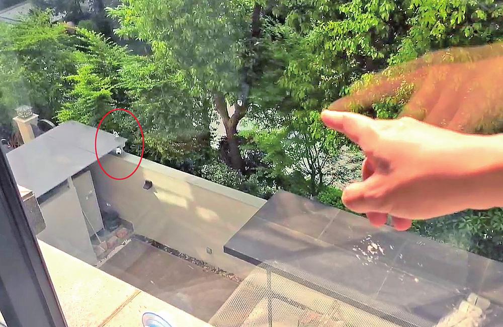 華先生稱一樓住戶家圍院的房頂上有一個攝像頭正對著他家窗戶