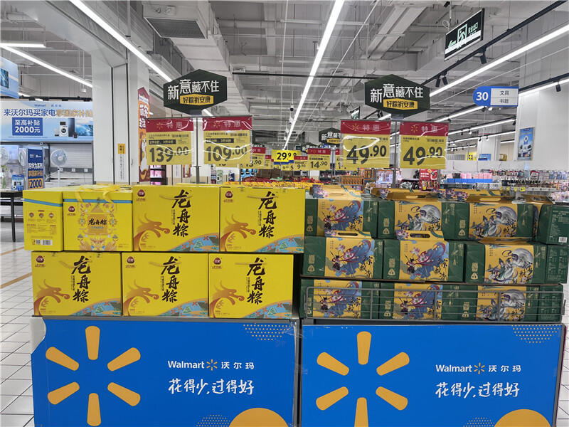 在沃爾瑪(悅云天地店)專(zhuān)門(mén)設(shè)置了一條“粽子街”,禮盒裝價(jià)格從49.9元至139.9元/盒不等。其中,109元的禮盒內(nèi)有豆沙、八寶、豬肉、板栗豬肉、蛋黃豬肉粽等口味的7個(gè)粽子。除了常見(jiàn)口味,還有49.9元/盒的水晶冰粽,內(nèi)置生巧脆脆、青檸芝士、百香果鳳梨和芒果四個(gè)口味。