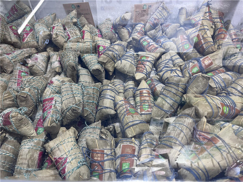 一名工作人員介紹,四月初,他們就開(kāi)始上粽子了,和往年上市的時(shí)間差不多。目前口味少,銷(xiāo)量較小?!艾F(xiàn)在購(gòu)買(mǎi)率不高,偶爾有顧客買(mǎi)一兩袋嘗嘗鮮,后續(xù)我們還會(huì)上禮盒裝,口味也會(huì)多一些。”