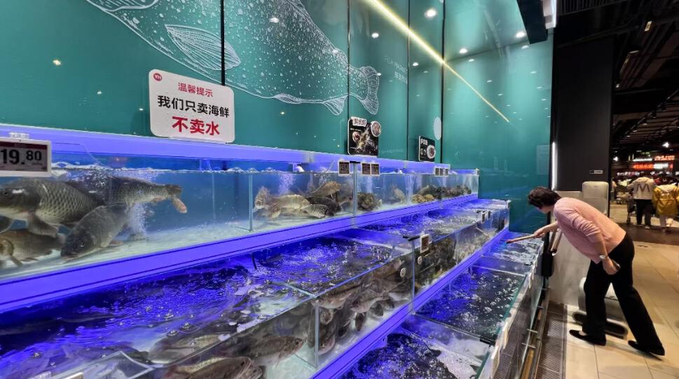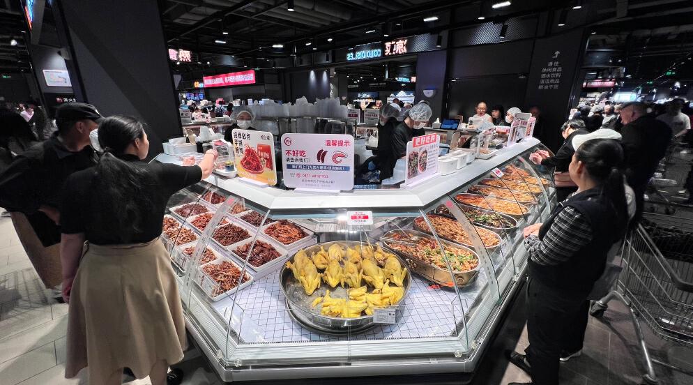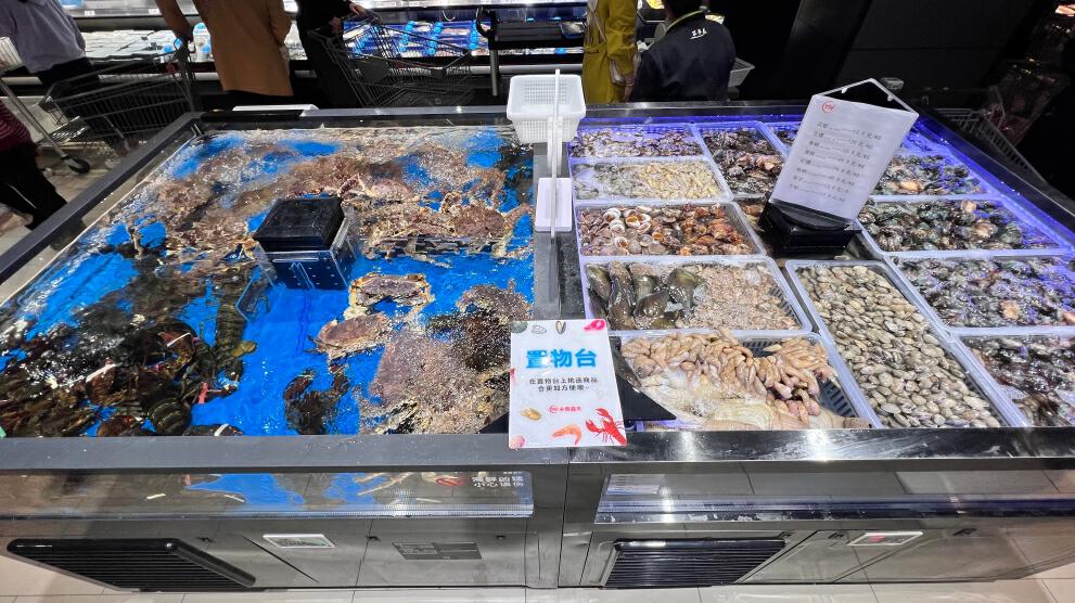 在海鮮區(qū),師傅們熟練進(jìn)行活魚剖殺、切段清洗。東西買好了,不知道怎么烹飪好吃?超市直接附上免費(fèi)菜譜。肉禽柜臺(tái)也可以根據(jù)顧客需求提供切絲、切片、絞肉、剝皮、剔骨等服務(wù)。