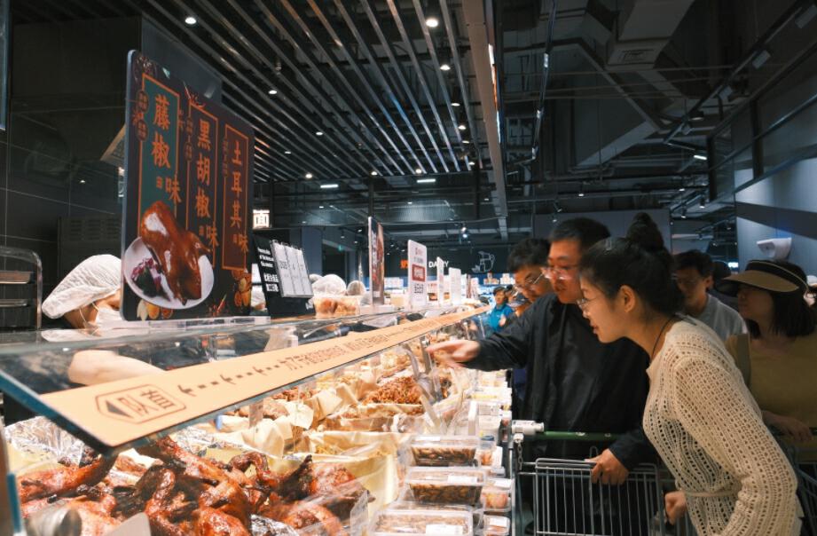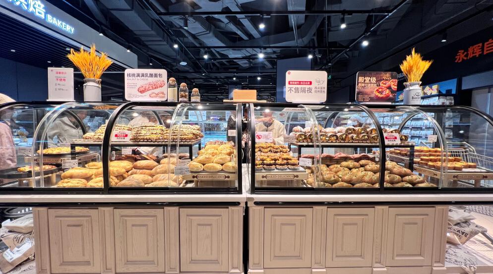在烘焙和熟食區(qū),展臺(tái)飄出陣陣香氣不僅令人食欲大增,還有滿滿煙火氣。韓式炸雞、九多肉多小紅腸、香辣豬蹄、傣味雞爪……色香味俱全。烘焙區(qū)的爆款則屬于“豐收的喜悅”,甄選南瓜、紫薯、紅薯和乳酪的結(jié)合,口感豐富有層次,而核桃滿滿、山楂紅棗布里歐,四拼瑞士卷、龍井桑葚大福等也讓全場(chǎng)麥香四溢?!俺?jí)多試吃產(chǎn)品,味道好,吃完再買,試吃后還能抽濕巾、紙巾擦手,服務(wù)細(xì)節(jié)拉滿?!笔忻裢跖吭嚦粤艘恍┫矚g的熟食后說(shuō)。