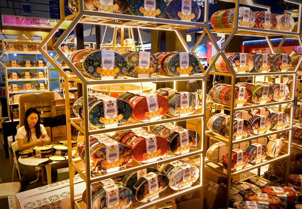GPR展臺(tái)位于第五屆中國(guó)國(guó)際消費(fèi)品博覽會(huì)馬來(lái)西亞中國(guó)總商會(huì)展區(qū)“C位”。燙金浮雕的餅干盒在燈光下流轉(zhuǎn)著光澤,美輪美奐如微型宮殿。