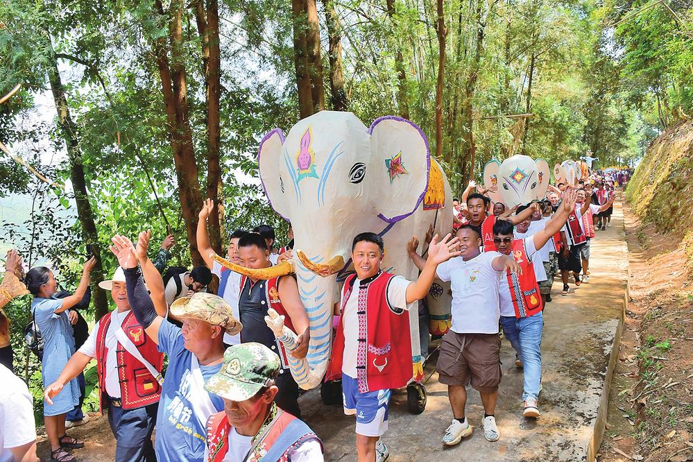 民族文化游演方隊走村串寨舉行“貢象”儀式