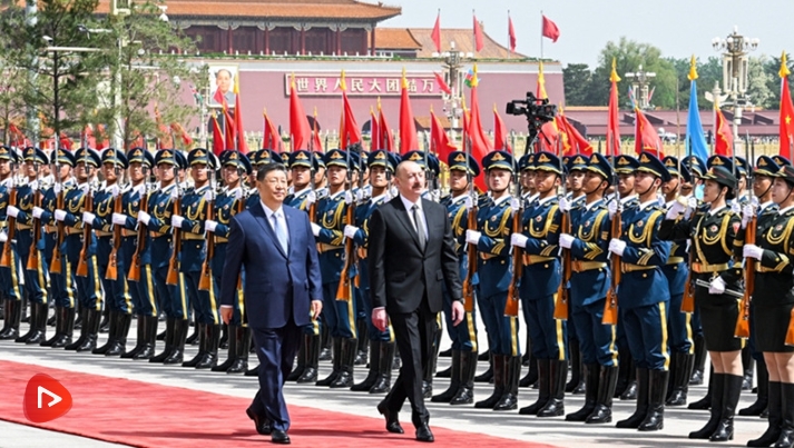 阿利耶夫抵達(dá)時(shí),禮兵列隊(duì)致敬。習(xí)近平同阿利耶夫登上檢閱臺(tái),軍樂(lè)團(tuán)奏中阿兩國(guó)國(guó)歌,天安門廣場(chǎng)鳴放21響禮炮。阿利耶夫在習(xí)近平陪同下檢閱中國(guó)人民解放軍儀仗隊(duì),并觀看分列式。