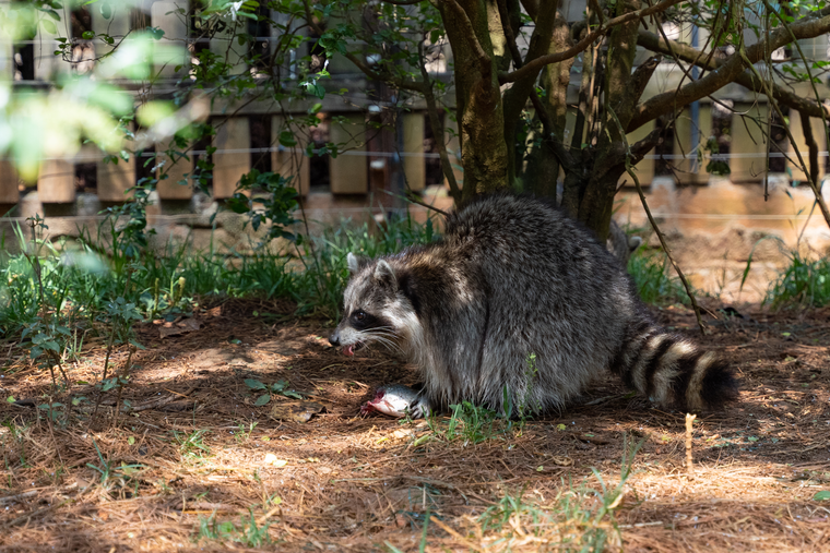 小浣熊吃的魚通常都是切好的魚塊,工作人員把魚放進(jìn)水池讓小浣熊自己去“摸魚”。由于小浣熊視覺不是很發(fā)達(dá),主要是靠手上的觸覺去感知食物的形狀大小,在水里搓搓能讓它們的觸覺更敏銳。