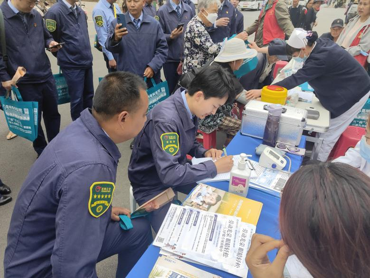 社區(qū)合作愛心企業(yè)代表為公交駕駛員送上貼心的慰問品并在北市區(qū)公交車場暢行游門店門口為公交駕駛員和家屬開展義診活動。