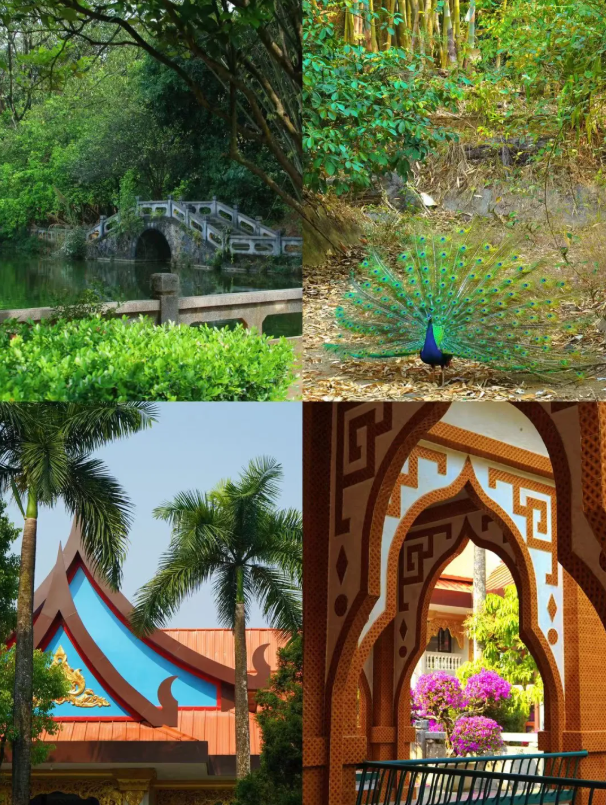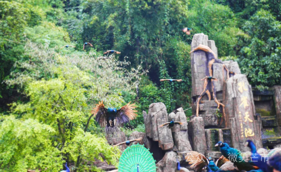 放養(yǎng)的孔雀以及多個花卉園