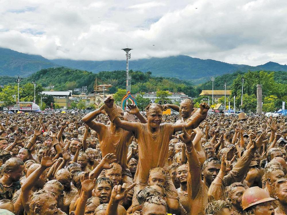 活動現(xiàn)場,上百臺木鼓齊鳴,聲如滾雷;千名佤族少女甩動長發(fā),舞姿豪放。上萬名游客與當?shù)厝罕姽餐瑓⑴c,人們互相涂抹泥漿、傳遞祝福,笑聲、歡呼與飛濺的泥點交織,廣場化作“泥漿海洋”。